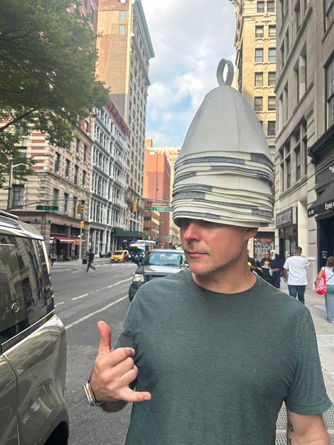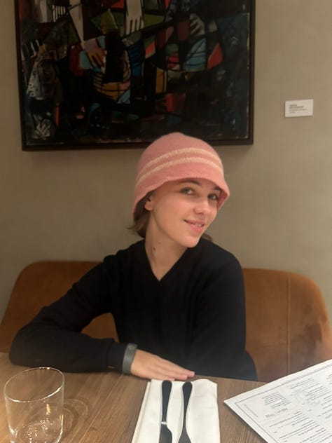 She comes to New York monthly and brings a small number of these hats with her—each one slightly different. Very human.