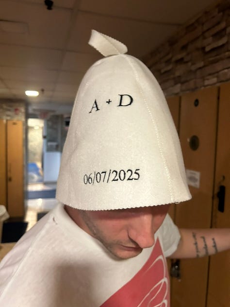 Love my sauna hat from Kirsti! You can feel the love she puts in- and they’re the absolute cutest!