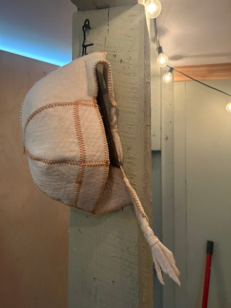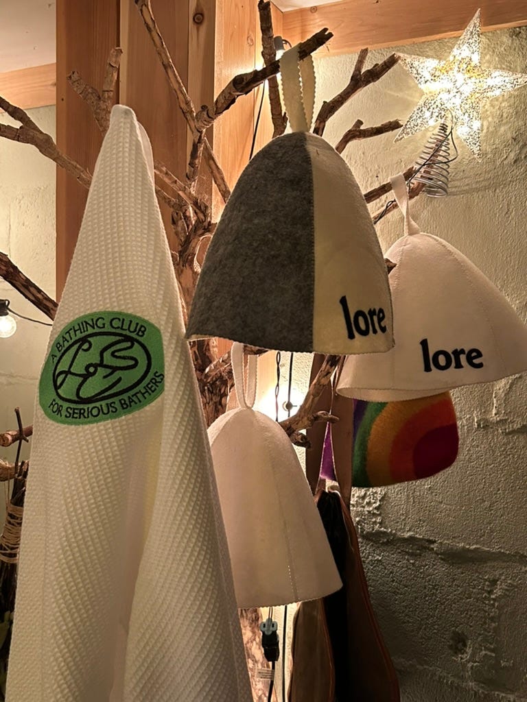 We found our hats through a sauna master in Norway—Kirsti—who works at a large sauna club outside Oslo called The Well.